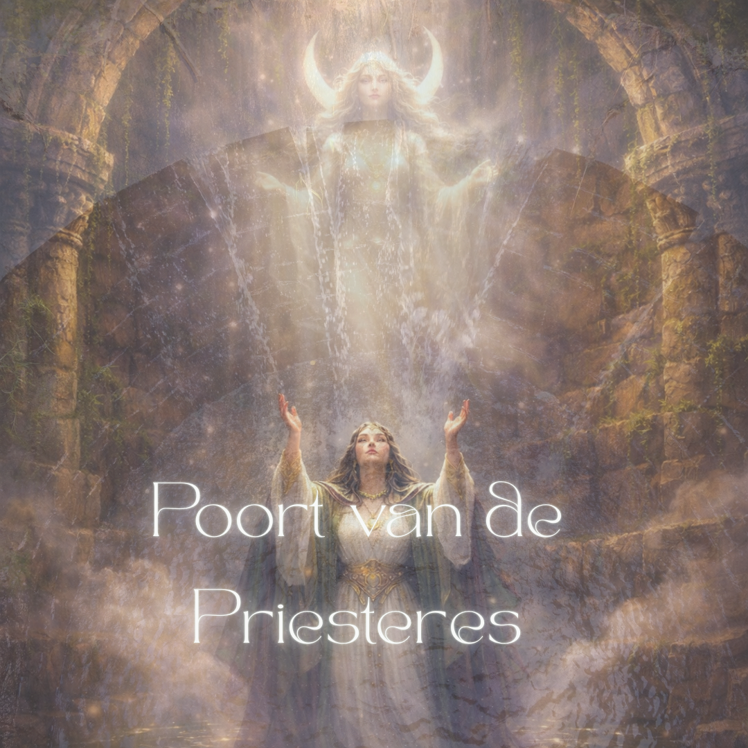 Deze zevende en laatste Poort is een Poort van thuiskomen in jezelf en jouw Bron. Om vanuit het contact met die eeuwige Bron, de stap naar buiten te gaan zetten, dienstbaar aan het grotere geheel. Een diepe Put waar het Mysterie wacht; daar ont-moet je Haar. En stap je, verbonden met de Priesteres die je altijd bent geweest, terug je leven in. Je dient jezelf en jouw Pad, je dient de Godin. Je bent zichtbaar.